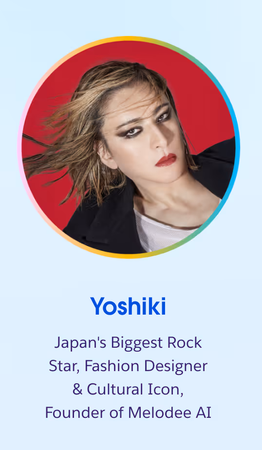 The session, titled “Rockstar Revolution,” will mark the world premiere of the newly evolved AI YOSHIKI, developed by YOSHIKI’s own team. This next-generation AI will demonstrate a bold new frontier in creativity—one where human artistry and artificial intelligence resonate together. Powered by cutting-edge platforms like Salesforce, the presentation will highlight a visionary future where artists reclaim creative control and break free from traditional industry structures.