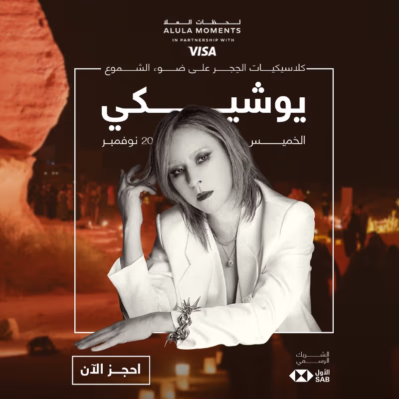 YOSHIKI will make history on November 20, 2025, becoming the first Japanese artist ever invited, to perform at Hegra, the breathtaking UNESCO World Heritage site in AlUla, Saudi Arabia. Presale tickets are now available for what promises to be one of the most extraordinary live performances of the year.